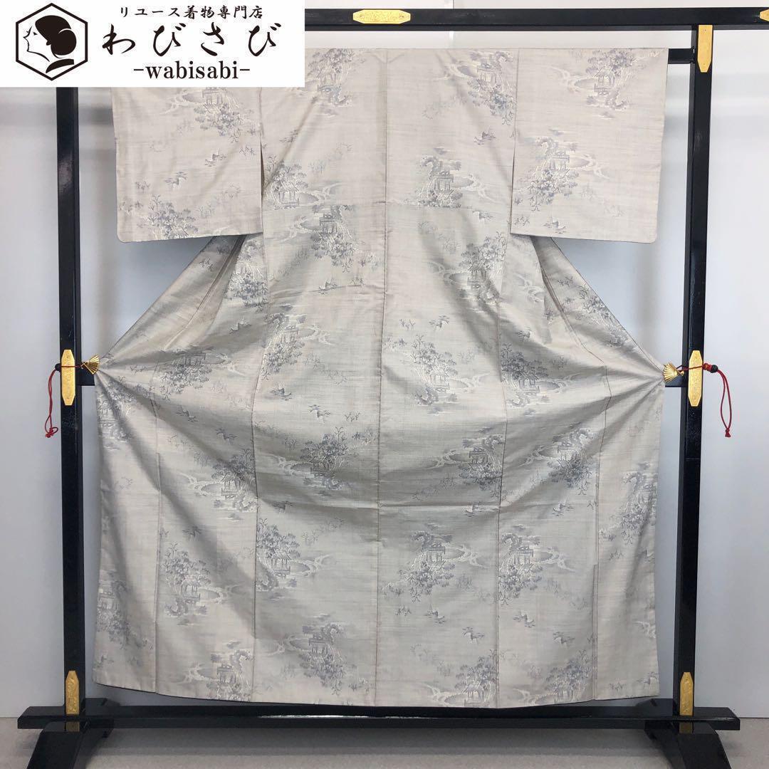 > 本場大島紬 白大島 カタス7マルキ 山の風景柄 乳白色 K-3491 着物 きもの kimono 和服 和装 中古 リサイクル着物 【送料無料】