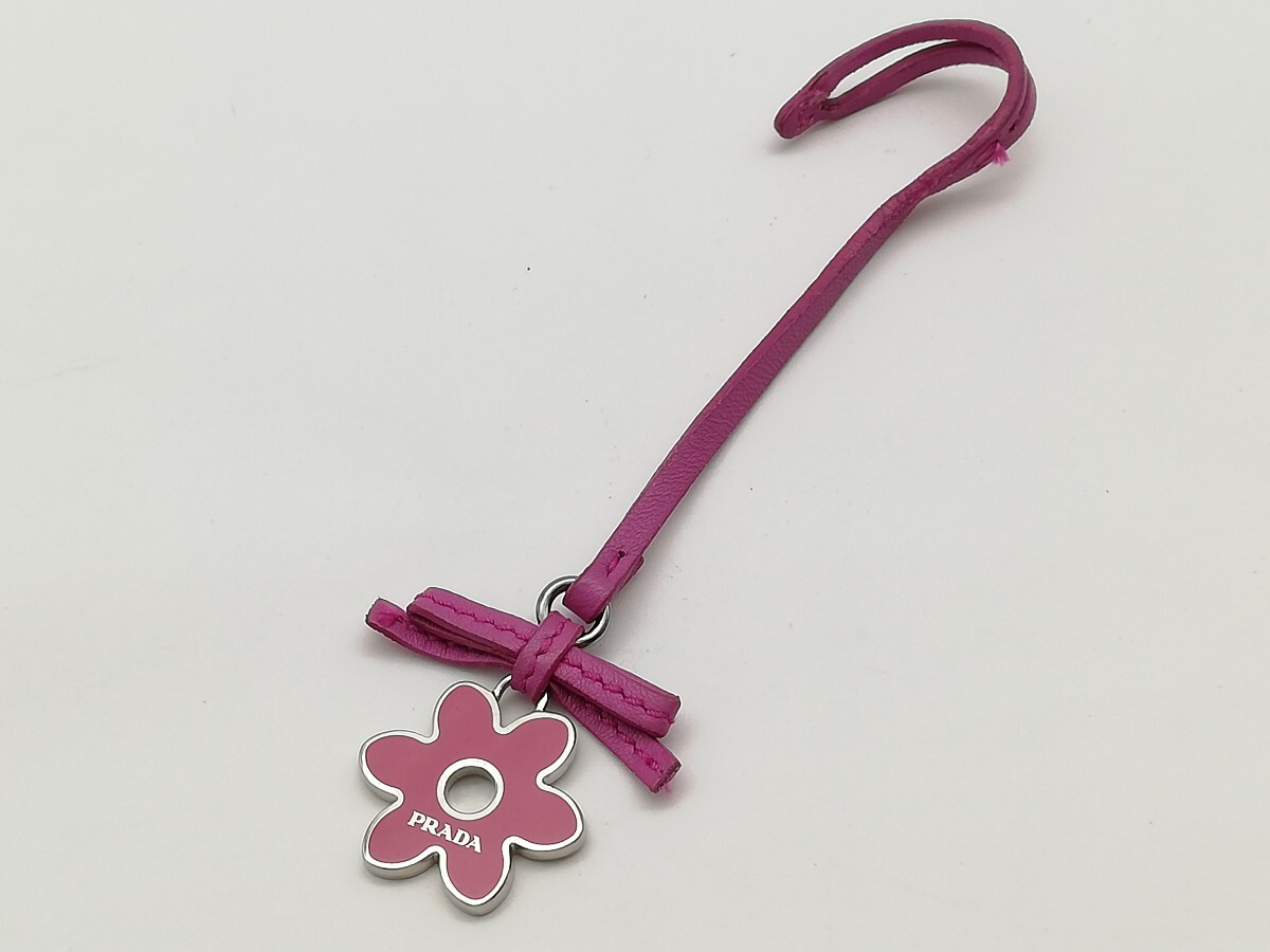 - PRADA チャーム キーホルダー フラワー リボン ピンク ロゴ ストラップ バッグチャーム ピンク プラダ