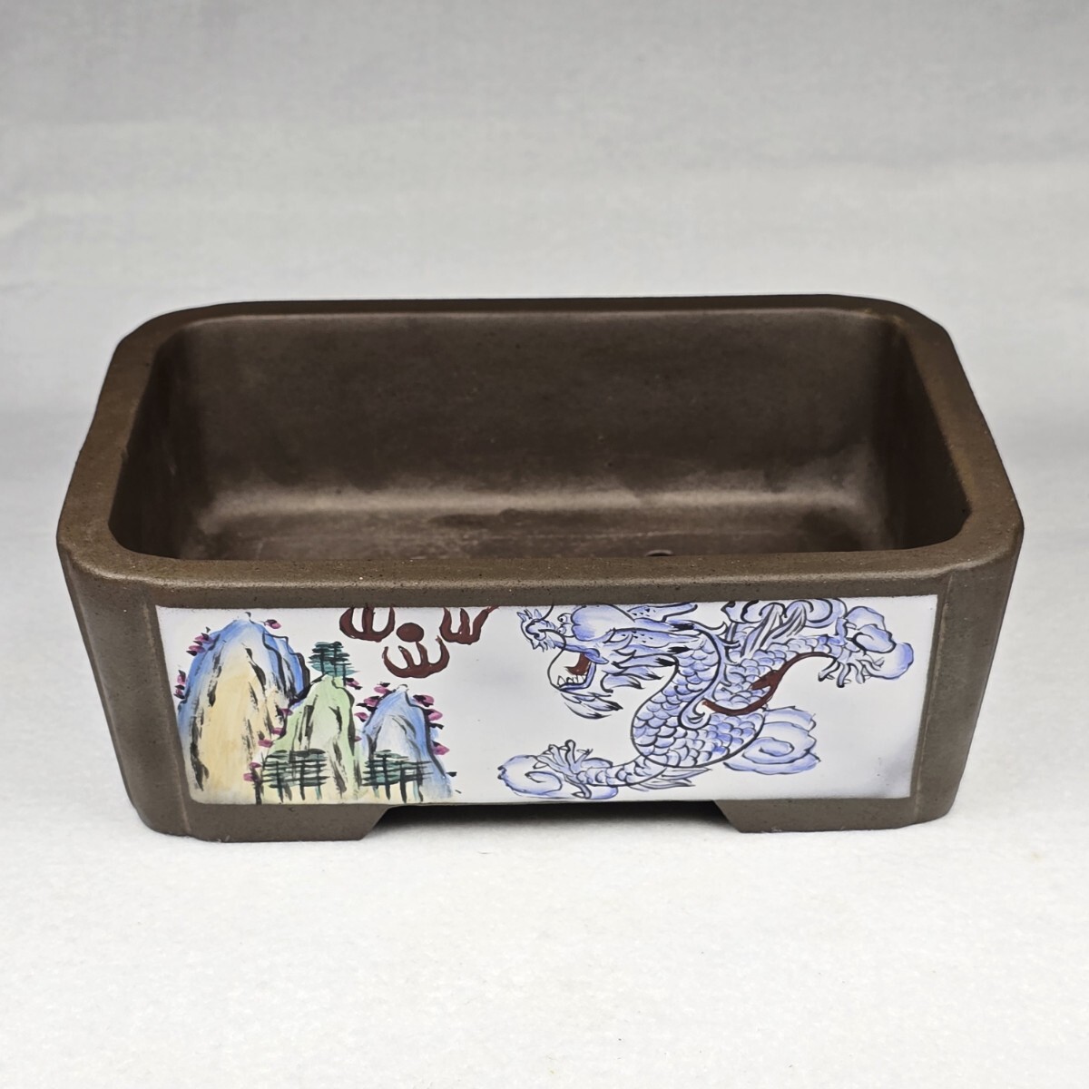 - 美品 宜興紫砂 段泥 施彩釉 飛龍宝相花紋 盆栽鉢 激安