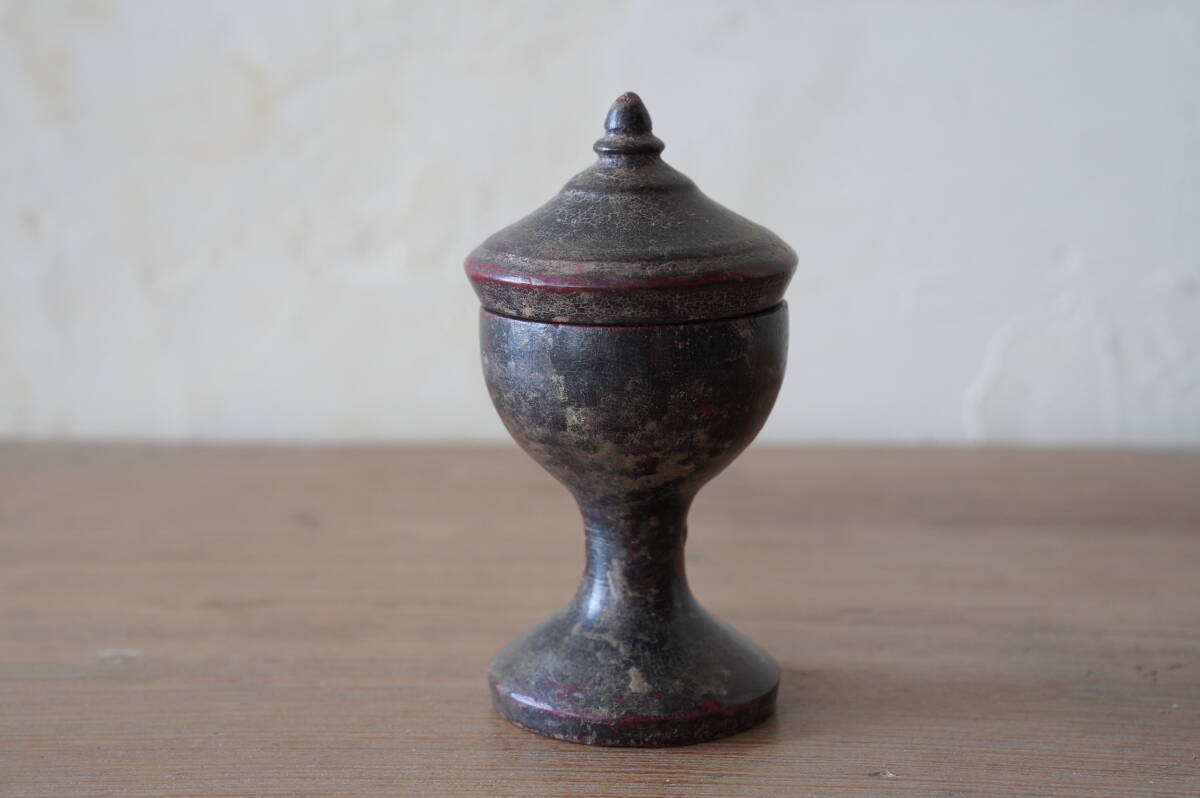 > インド アンティーク 木彫り ワンウッド 手彫り 民芸 民藝 置物 アート オブジェ ポット 蓋付き 器 インテリア ディスプレイ 高杯 ③