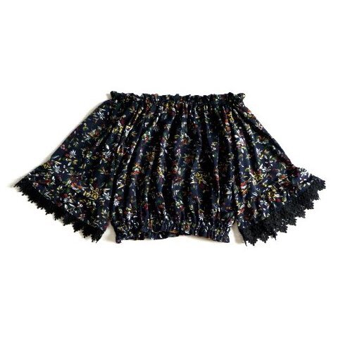 > 新品 SSサイズ XS オフショルダー ブラウス ボタニカル 紺 クロップド丈 へそ出し LUNACION ルナシオン