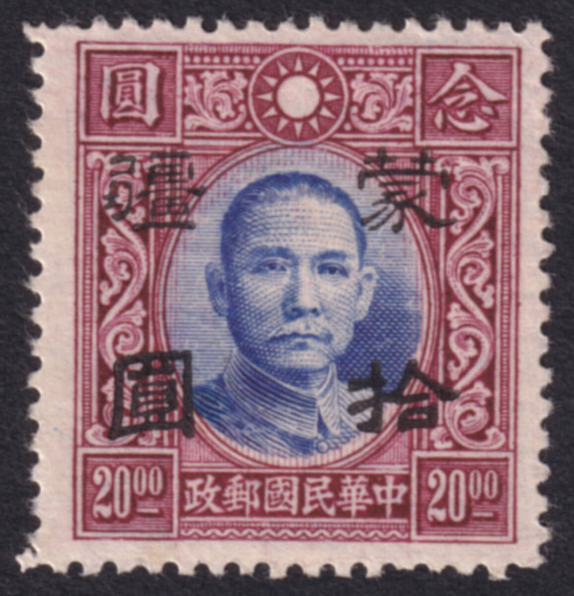 - 中国占領地切手 蒙彊 蒙彊半価加刷 大東版孫文票 すかし無 10円/20円 未使用 JPS:7C132 z13197