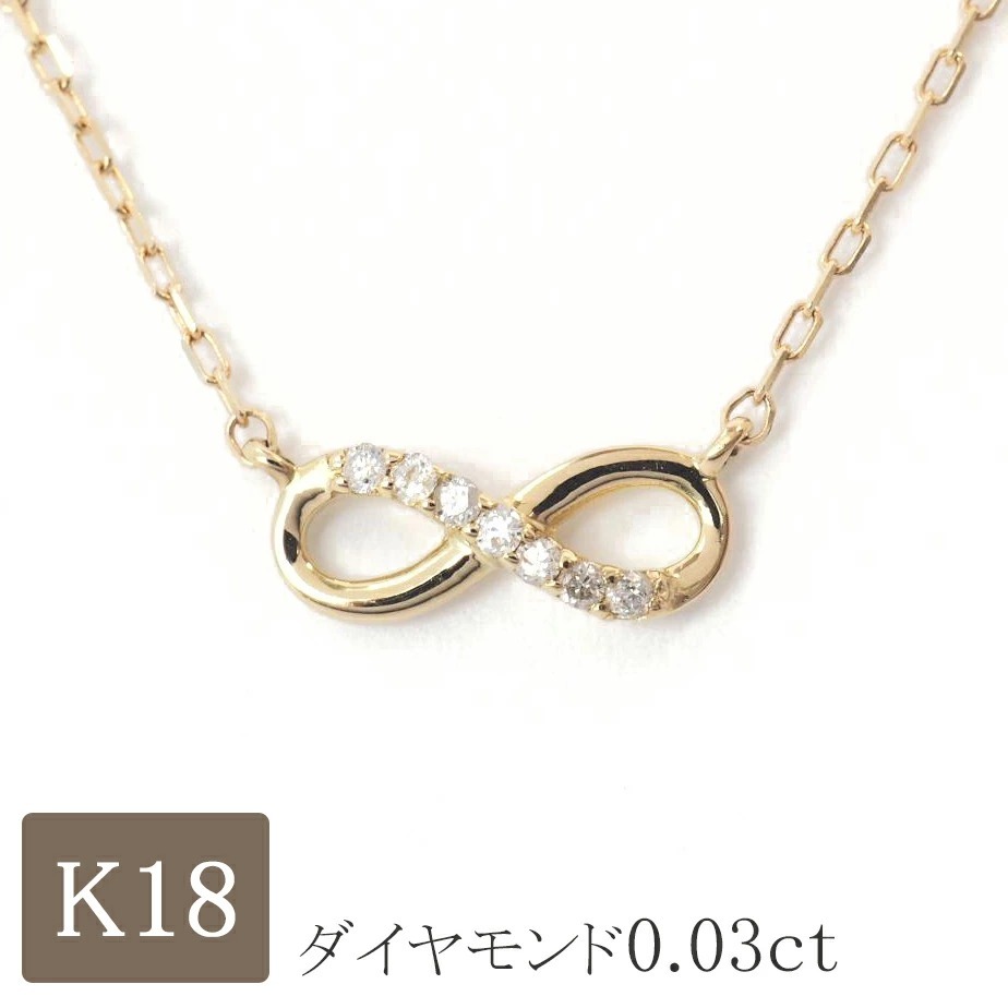 - 【18金】0.03ctダイヤネックレス アズキチェーン 無限モチーフ K18