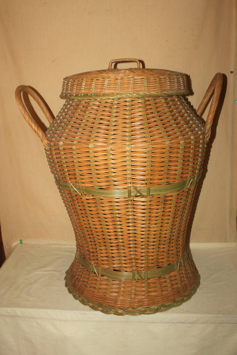 - ●特大 竹細工 籐細工 提灯型竹かご 蓋付 大型 提藍/茶籠/茶籃/煎茶道具/時代品