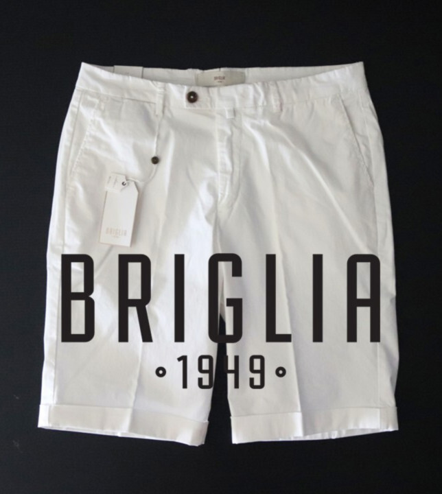 > 新品タグ付き【BRIGLIA ブリリア 1949】BG108 コットンストレッチ ノープリーツ ショーツ ショートパンツ 白 44 v7215