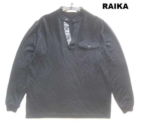 > 極上日本製!!ライカ RAIKA STYLE*定価2.4万 胸ポケット付き メリノウールヘンリーネックニットセーター 46 M 黒 ブラック