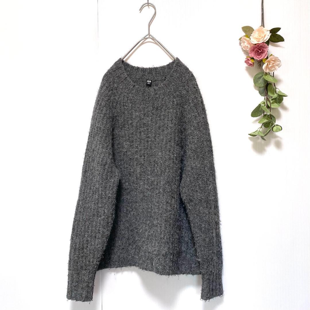 - 【UNIQLO】ユニクロ グレー ローゲージモックネックセーター 長袖 (M)