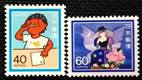 > [25062843]【ふみの日・1983年】単片2種「少年と手紙・妖精からの便り」40円+60円 美品