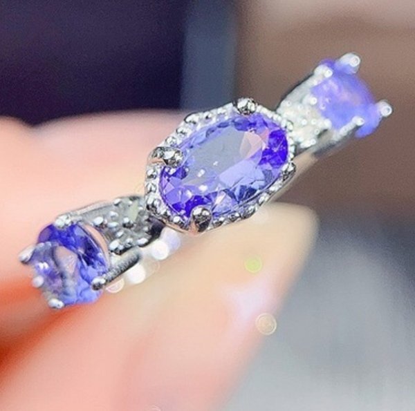 女性のための天然タンザナイトエンゲージリング、925シルバー