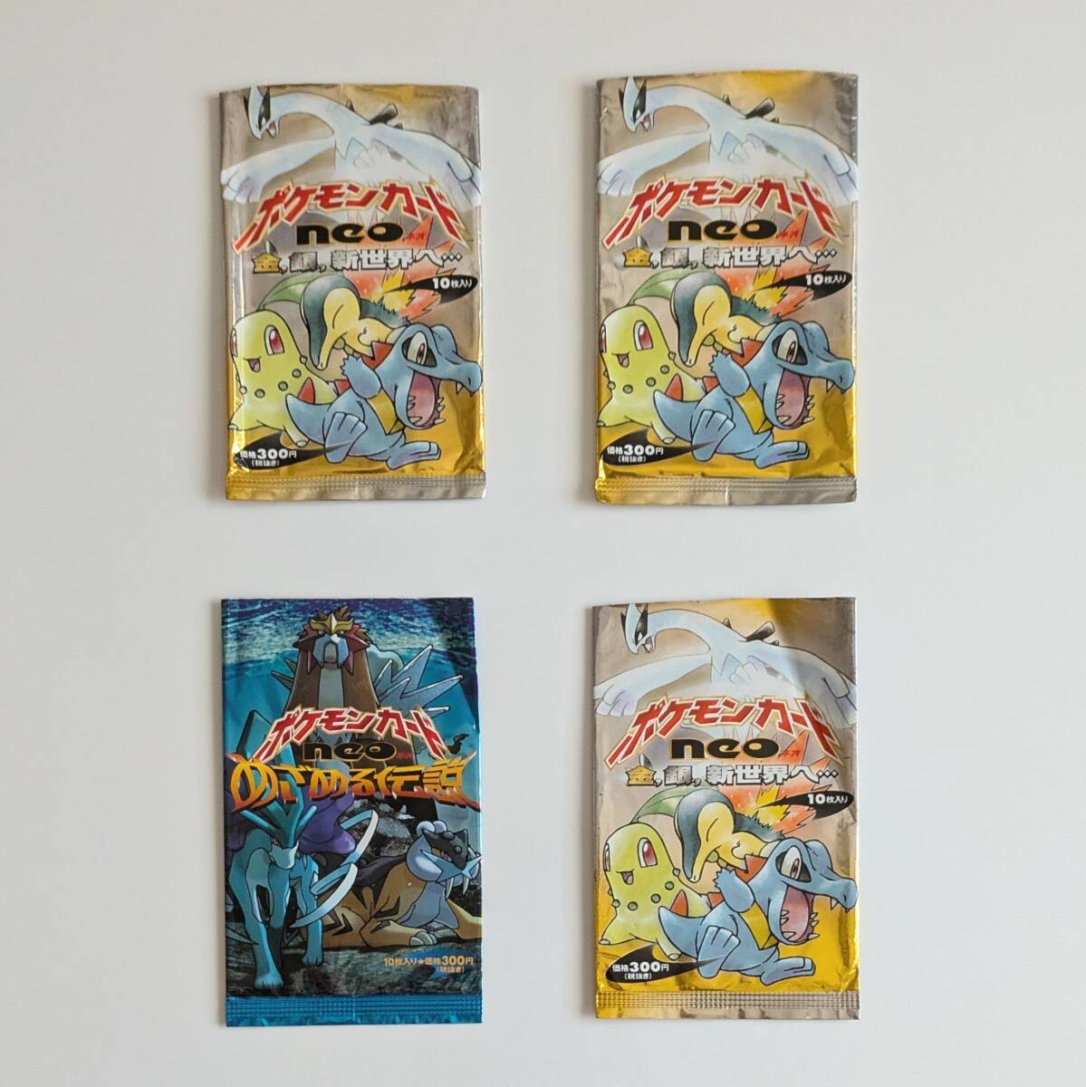 - ※空パック 中古品 開封済み カード袋のみ 4点セット ポケモンカード neo 金、銀、新世界へ... めざめる伝説 旧裏 拡張パック ポケカ 空袋