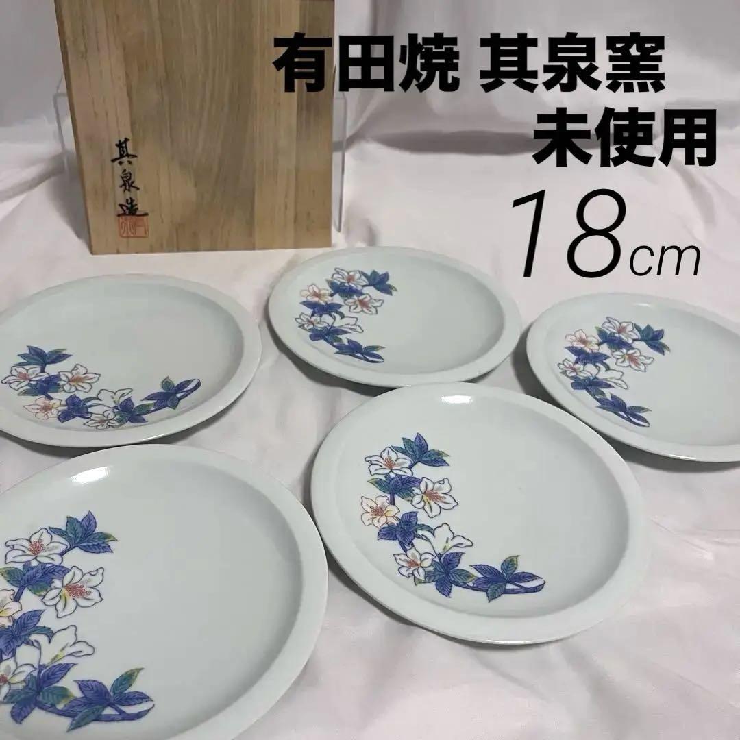 - 未使用 有田焼 其泉窯 躑躅紋様 色鍋島調 中皿 5枚 賞美堂本店 つつじ 18cm