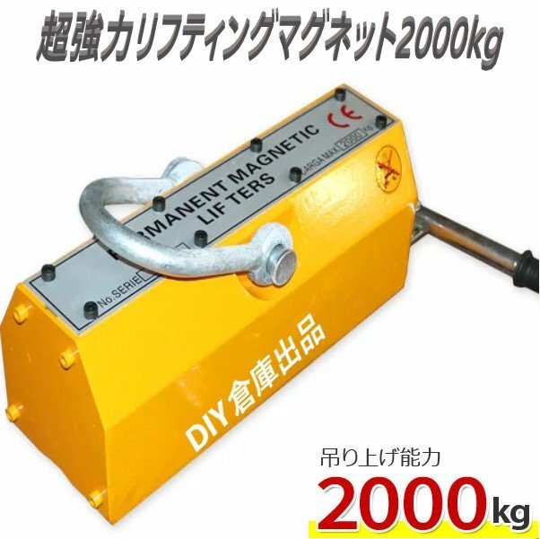 > 超強力リフティングマグネット2000kg / リフマグ 電源不要 永久磁石 重量物 持ち上げ 吊り上げ 玉掛け CE認証安全レバー操作で簡単にON/OFF