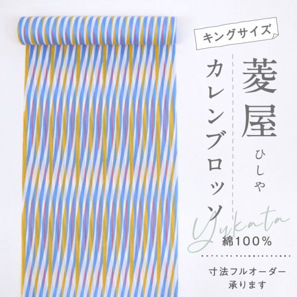 - 【反物】 浴衣 『菱屋カレンブロッソ』 広幅 キングサイズ カラフル幾何学 白 木綿着物 お仕立て可 反25-21