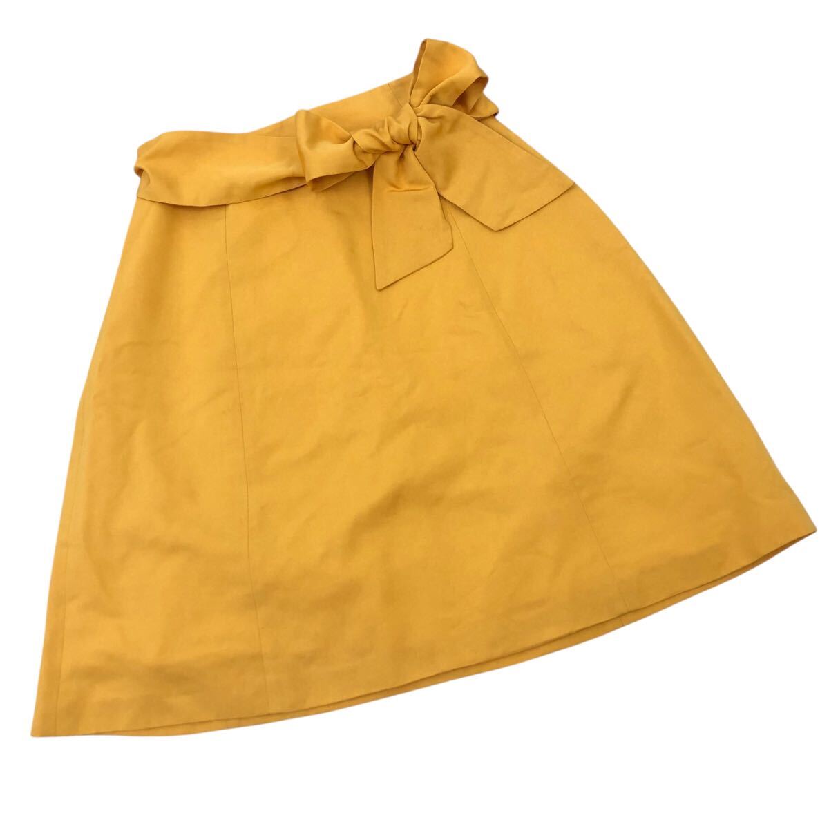 > C424-82 DRESSTERIOR ドレステリア 共布ベルト リボン 付き シルク混 膝丈スカート スカート ボトムス レディース 36 マスタード からし色