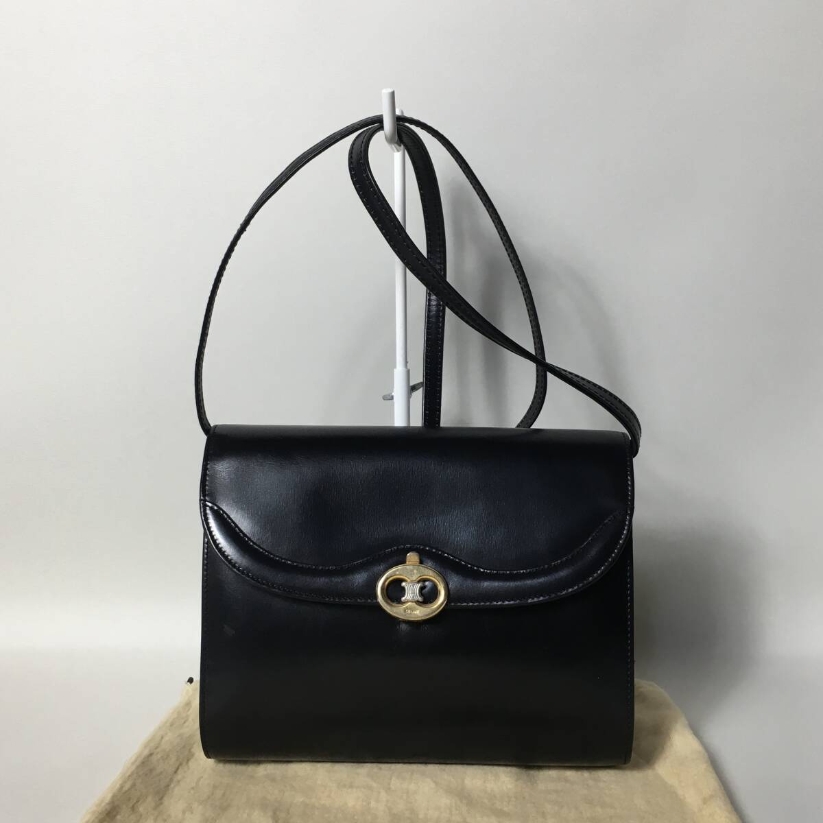 - 75B128|美品|セリーヌ ショルダーバッグ ブラック トリオンフロゴ金具