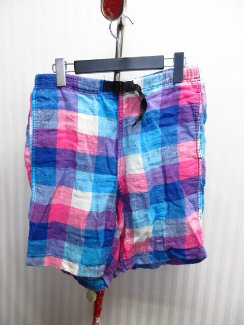 > グラミチ リネンショーツ メンズM チェック柄クライミングパンツ アウトドア ショートパンツ ハーフパンツ 麻パンツ サマーパンツ07012