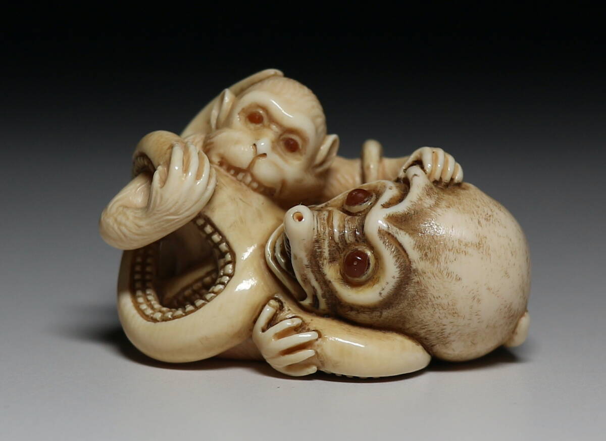 - 【心】k475 根付 タコと猿 見事な彫り!