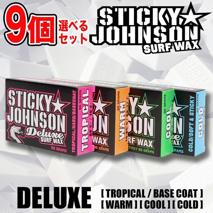 - 選べる9個セット■STICKY JOHNSON Deluxe■サーフィン用ワックス (COLD・COOL・WARM・TROPICAL/BASE)/スティッキージョンソン 送料無料