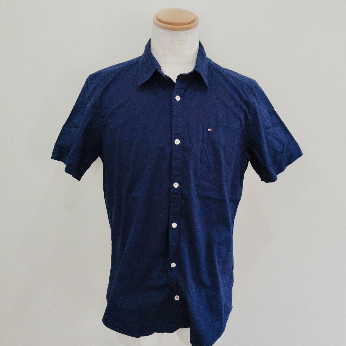 > 0703/L/TOMMY HILFIGER メンズ 半袖 シャツ 無地 ネイビー