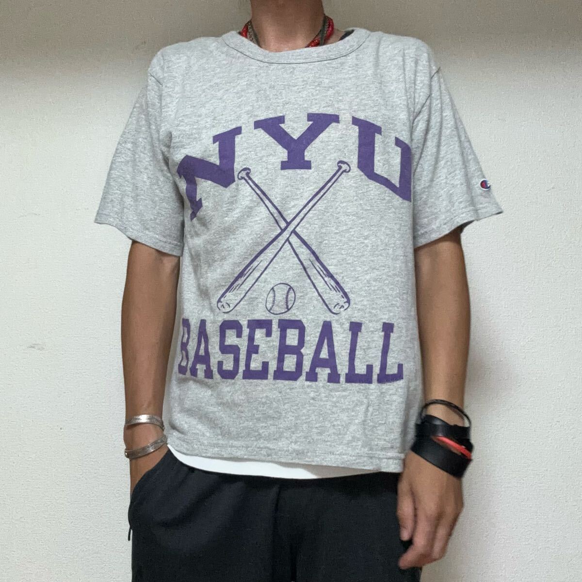 - 90s 00sチャンピオン Champion NYUニューヨーク大学TシャツS短丈 ビンテージ アメカジ系