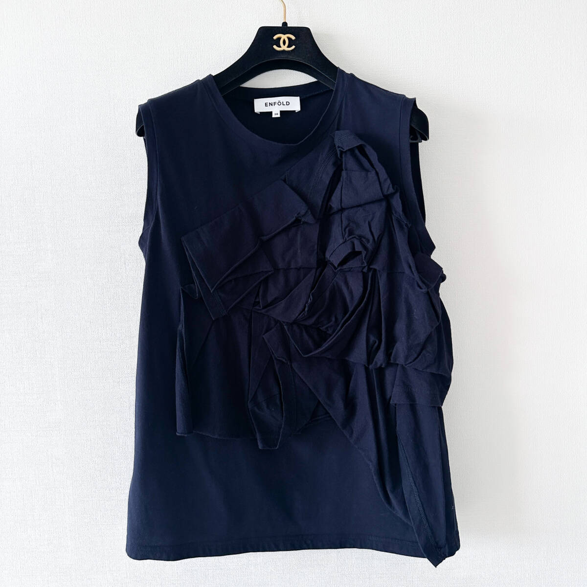 - ENFLD エンフォルド / 立体 フリル ノースリーブカットソー ネイビー 38 ENFOLD 濃紺
