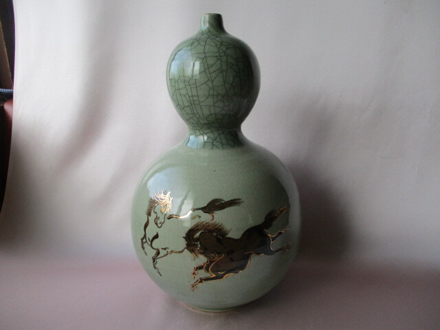 - 相馬焼 ひょうたん 瓢箪形 置物 高さ37cm 岳堂窯 志賀陶器店 中古品