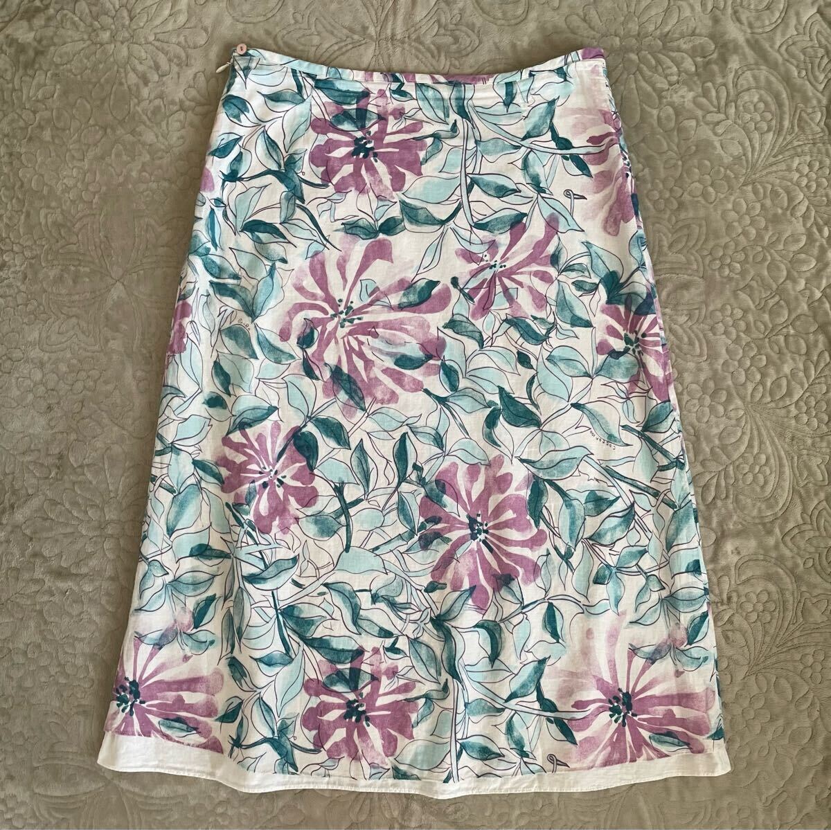- パラスパレス 花柄 フレアー スカート 綿100% オフホワイト 薄紫 青緑 コットン レイヤード 旧ロゴ 日本製 3