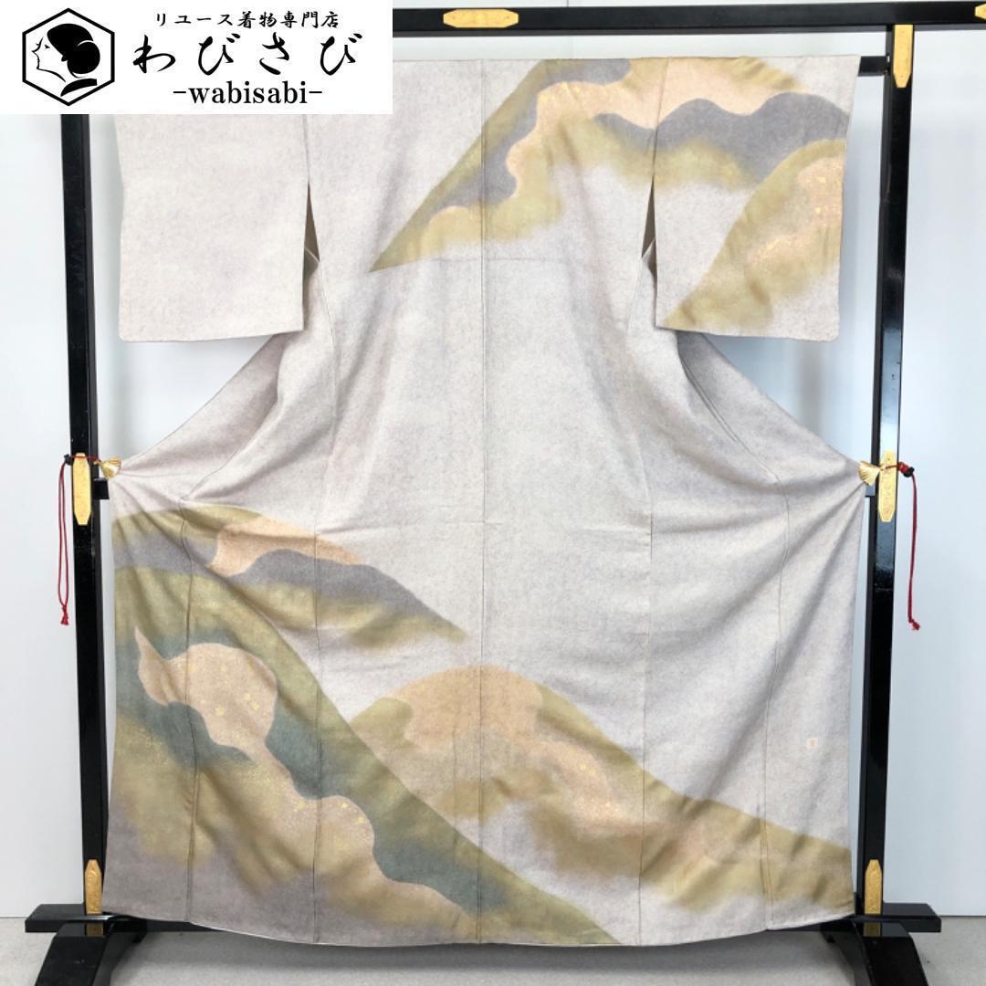 > 訪問着 作家物 遠山模様 金彩 暈し 白練色 K-4966 着物 きもの kimono 和服 和装 中古 リサイクル着物 【送料無料】