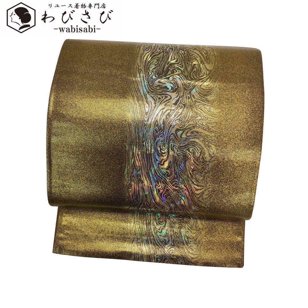 - 袋帯 西陣 橋本織物 縦柄墨流し模様 オーロラ箔 金色 O-3475 着物 きもの kimono 和服 和装 中古 リサイクル着物 【送料無料】