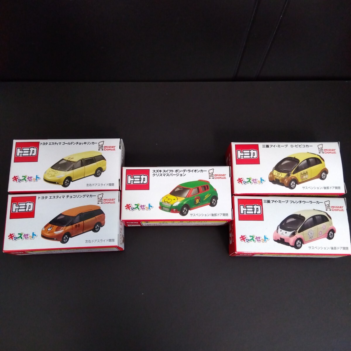 > ◇未使用◇ミスタードーナツ×トミカ ミニカー5種 トヨタ エスティマ/スズキ スイフト/三菱 アイ・ミーブ 当時物 外箱付 ミスド◇希少即決