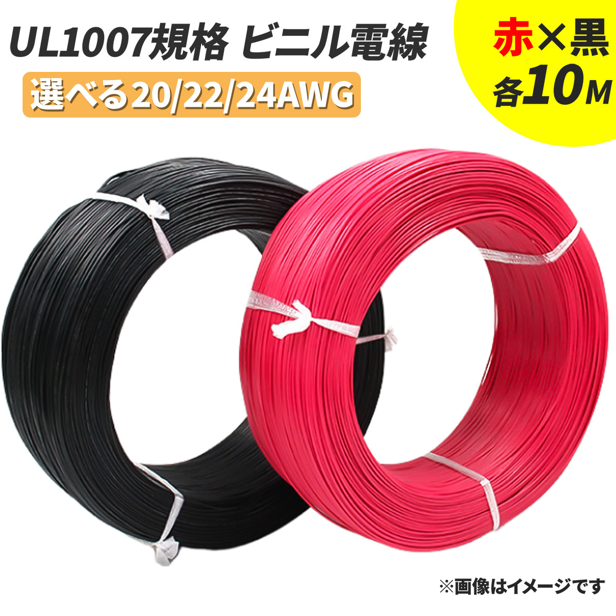 - 耐熱ビニル電線赤黒セット 【赤・黒各10m*2本 合計20m】UL1007 機器配線用耐熱ビニル電線 UL線 ハーネス ケーブル 配線