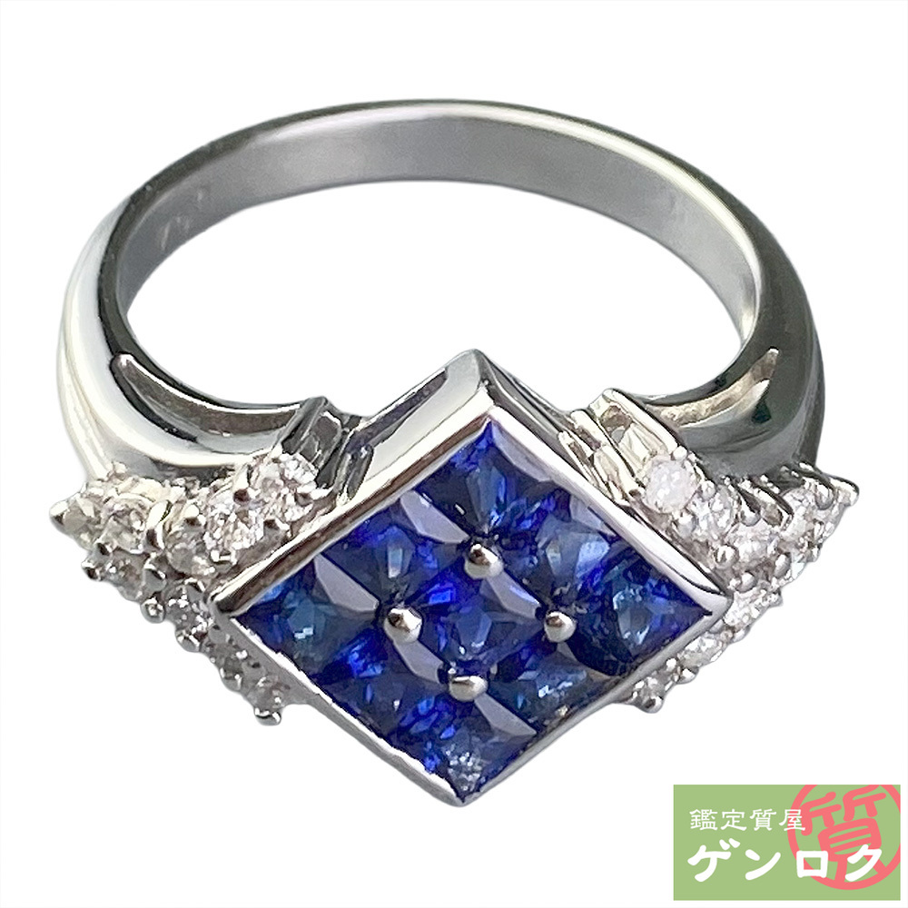☆ひし形に配置されたサファイアと脇に散りばめられダイヤが美しい指輪が入荷致しました。商品画像について、実物に近いカラーを再現する様努めておりますが、お使いのモニターや端末の設定により色味が変わる場合がございます。予めご了承下さい。
