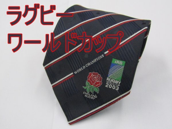 > 【ラグビーワールドカップ2003】 E 704 ラグビーワールドカップ ネクタイ 紺系 ストライプ ワンポイント ブランドロゴ ジャガード