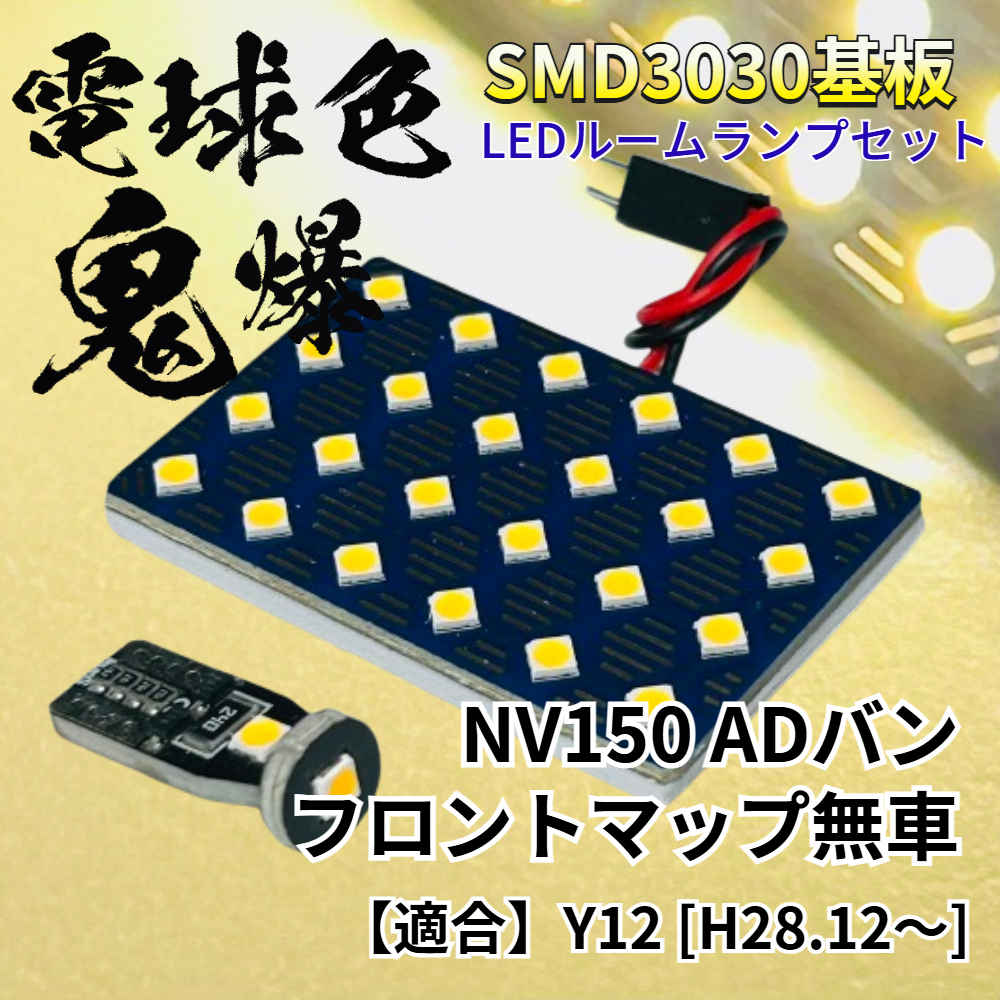- 【電球色】NV150 ADバン フロントマップ無車 Y12 暖色 鬼爆基板 3030SMD LED ルームランプ セット 車内灯 パーツ アクセサリ ニッサン