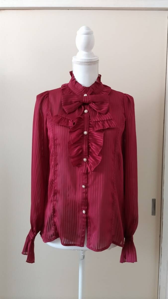 > No.2747_アクシーズファムkawaii_ボルドー透けストライプ生地ブラウス