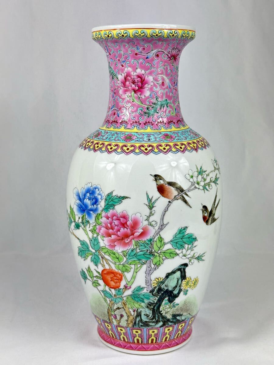 - 中国景徳粉彩[大清乾隆年製 花鳥図花瓶]景徳鎮製 陶磁器 古美術品 花瓶 花器