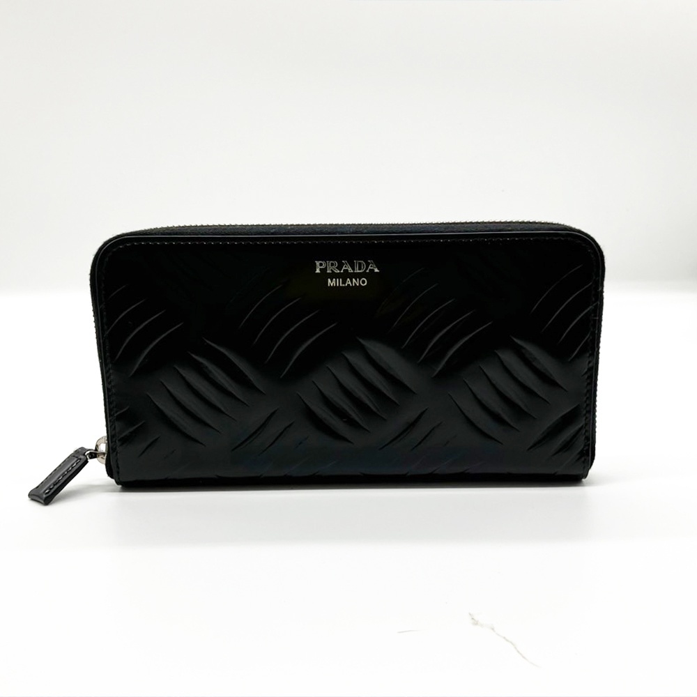 > プラダ ラウンドファスナー財布 ブラッシュドレザー 長財布 2ML317 2CNU ブラック PRADA Aランク 中古