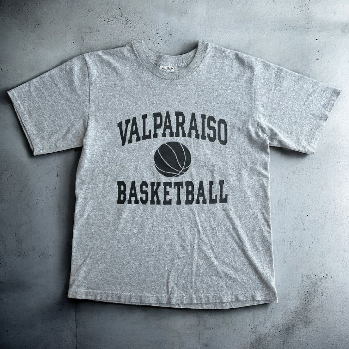 > USA製 90s The Cotton Exchange VALPARAISO BASKETBALL Tシャツ L グレー ヘビーウェイトボディ シングルステッチ ヴィンテージ古着