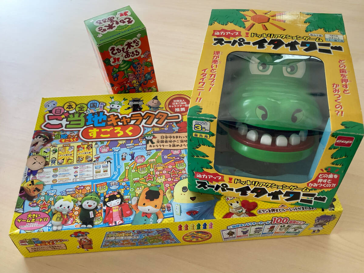 - 【送料込み・ほぼ未使用】パーティーゲーム3点セット [日本全国 ご当地キャラクターすごろく・スーパーイタイワニー・さるも木からおちる]