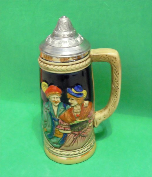 - ビールジョッキ 陶器製 800ml程度 10x20cm フタ付 ビアマグ 中古