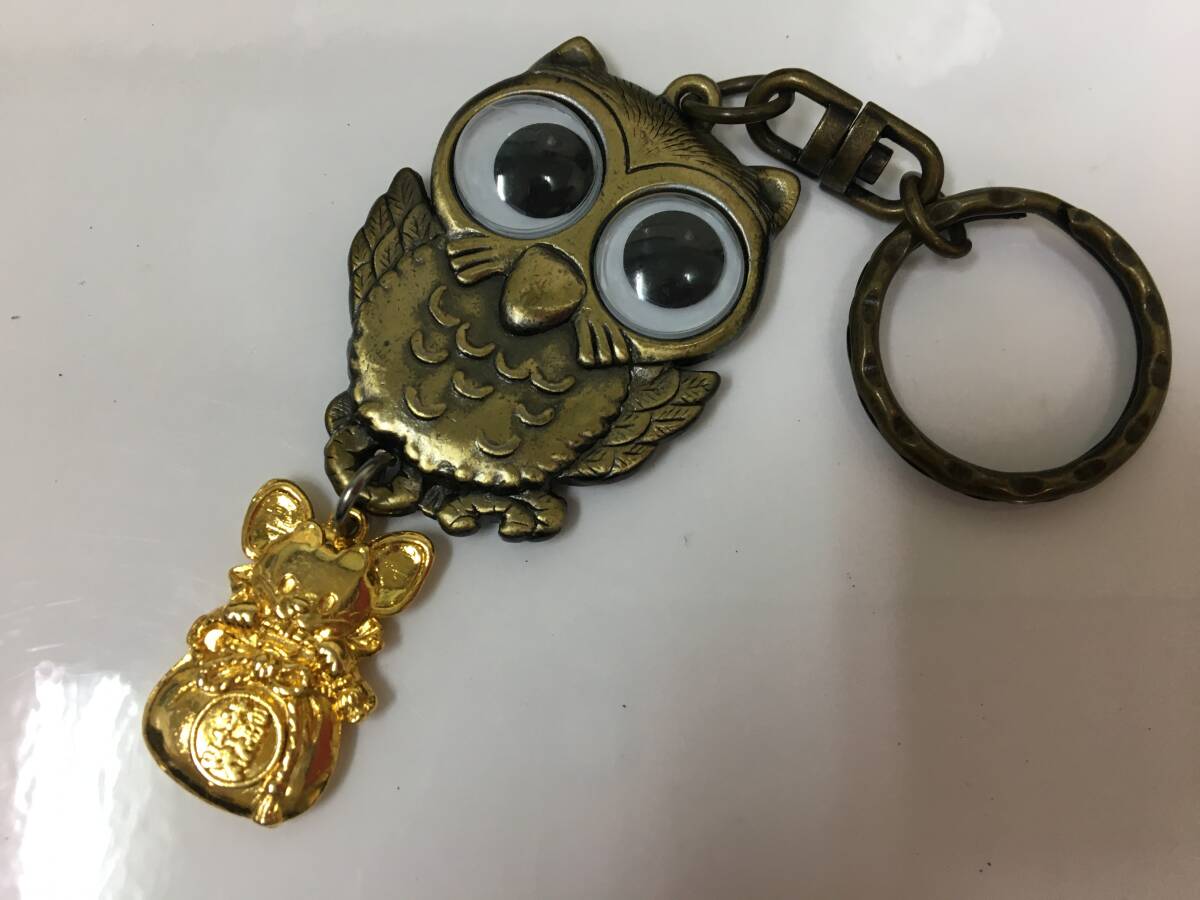 - ★レトロ★北海道・美深町 金の福袋付「フクロウ(不苦労)キーホルダー」縁起物 道北 ご当地 観光 土産物(白い恋人缶C保管)