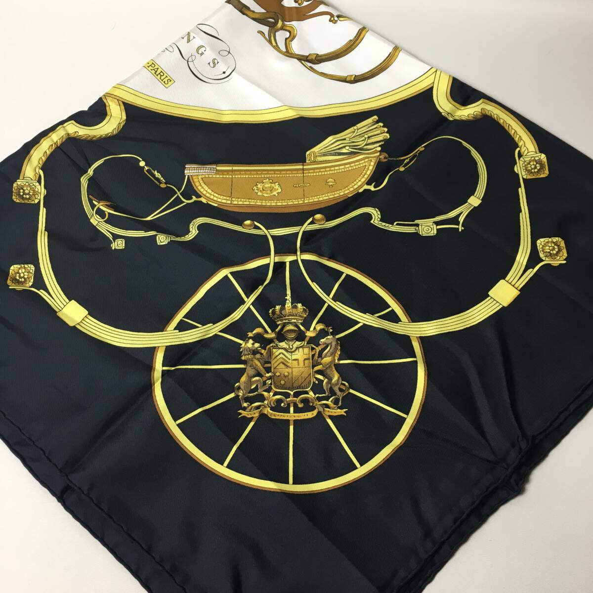 - 75B218|美品|エルメス カレ 90 スカーフ シルク ブラック
