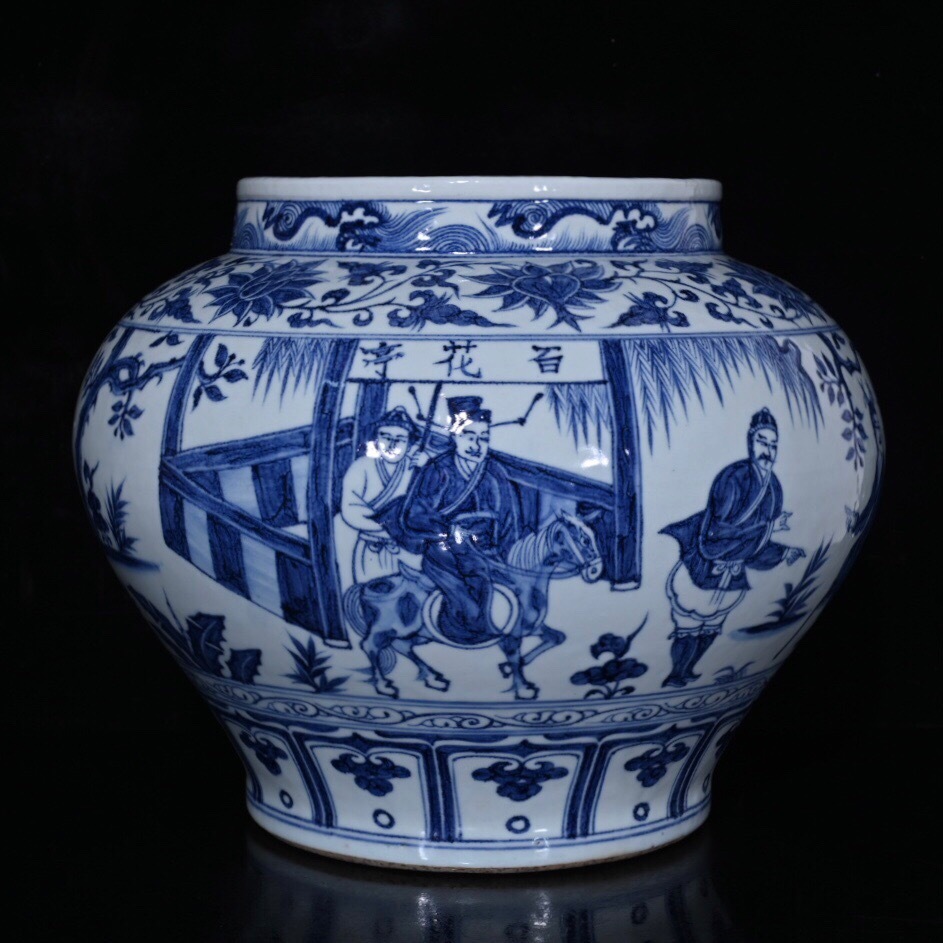 > 『館蔵珍品 元 古陶瓷品 青花 人物故事紋罐 陶藝』稀少珍蔵品 古賞物 貴重物品 収蔵品 中国古美術 時代物 古董品