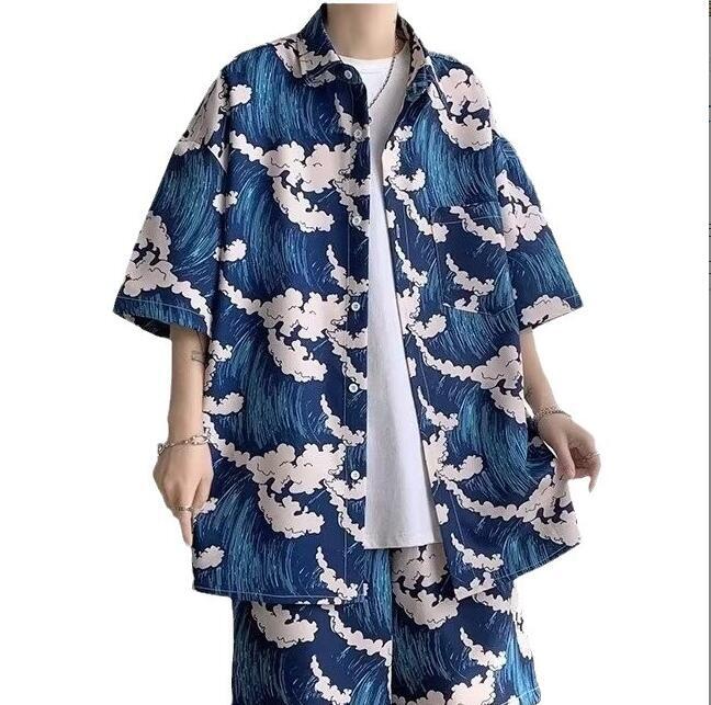 - 人気ジャージ 上下セットアップ メンズ スウェット 花柄 半袖 Tシャツ ハーフパンツ ルームウェア 部屋着 トレーナー 大きいサイズ 夏