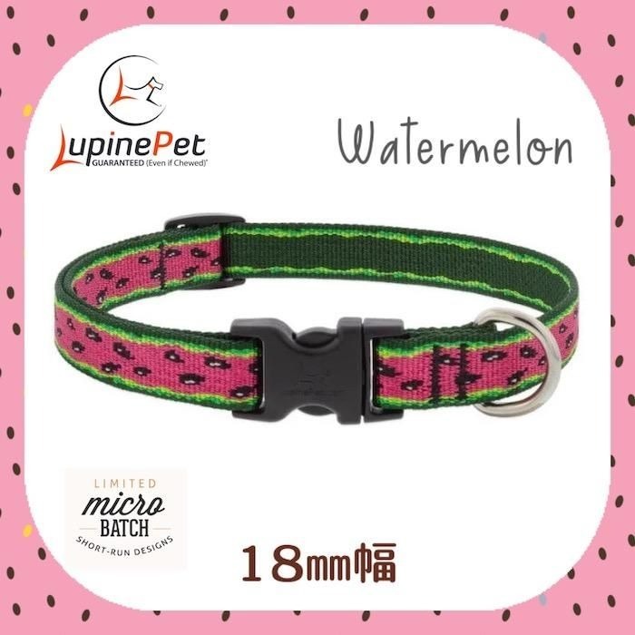 > ワンタッチ首輪・Mサイズ・18mm幅スイカ柄 33-56cm LUPINEルパイン アメリカ製 軽量 丈夫 中型犬 Watermelon