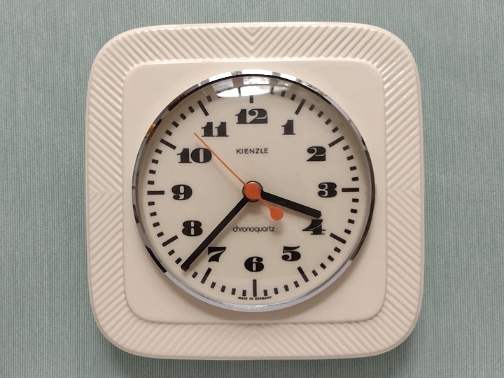 > ●○ドイツ製 陶器の壁掛け時計 クリーム色○●KIENZLEアナログウォールクロックレトロビンテージアンティークインテリア IN817