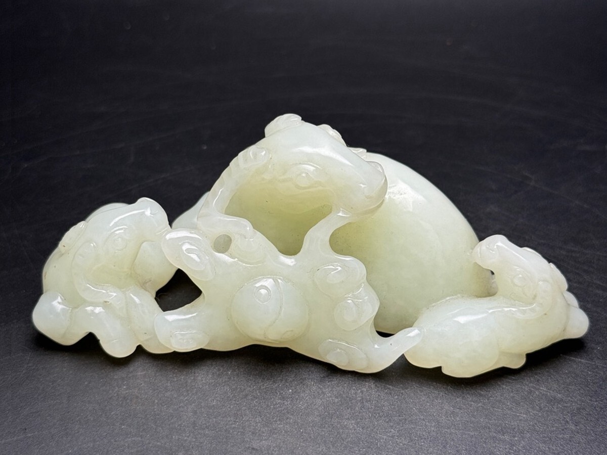- 「清代 和田玉 白玉彫り 事事順心 三羊開泰」極細工 擺件 中国古賞物 古美術 旧蔵出