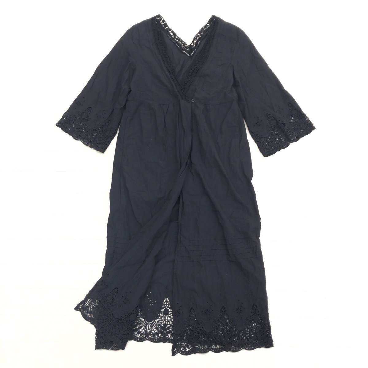 > IENA SLOBE イエナ コットン100% エンブロイダリー ガウン ワンピース F 黒 ブラック レース チュニック 羽織り ミモレ丈 レディース
