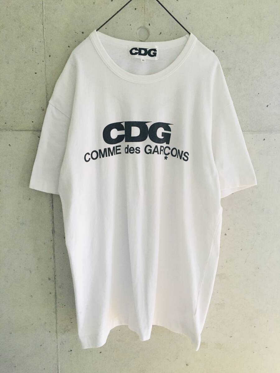 > 【★激希少★メンズXL★送料無料!】シーディージーコムデギャルソン ブラック ロゴ入り ホワイト 半袖 Tシャツ CDG COMME des GARCONS
