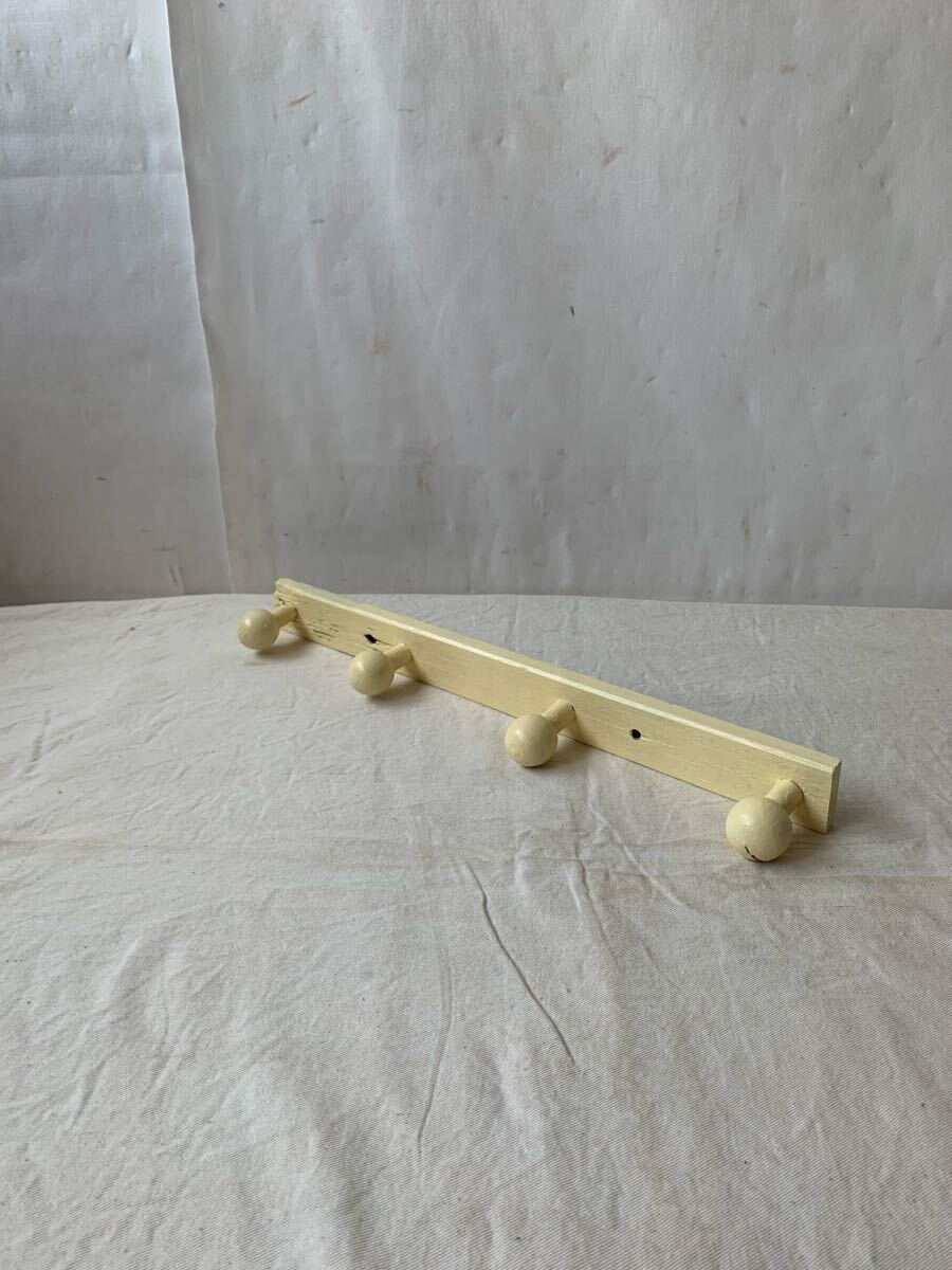 - 経年の雰囲気が素敵な壁付け木製4連フック 帽子掛けコートハンガーインテリアディスプレイ店舗什器アンティークビンテージ昭和レトロ古道具